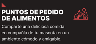 También contamos con puntos de pedido de alimentos, ideales para compartir una comida en un ambiente pet-friendly. Además, nuestra zona de entretenimiento está pensada para que niños, adultos y mascotas se diviertan y creen momentos inolvidables. Si buscas lo mejor para tu peludo, nuestra pet shop ofrece snacks y alimentos de alta calidad.